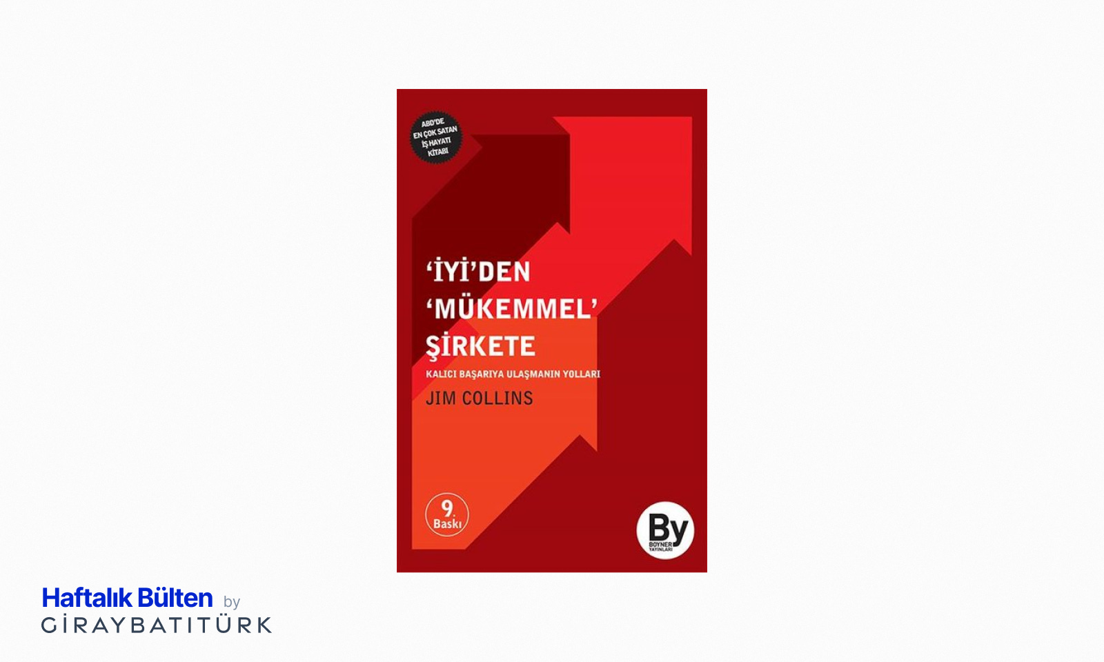 "İyiden Mükemmel Şirkete" kitabında Jim Collins, iyi şirketleri mükemmel olanlardan ayıran şeyleri araştırıyor. Bu kitaptaki içgörüler, tasarımcıların liderlik yeteneklerini geliştirmelerine, tasarım ekipleri içinde mükemmellik kültürünü teşvik etmelerine ve çalışmalarını olağanüstü sonuçlar üretmeye yönlendirmelerine yardımcı olacaktır.