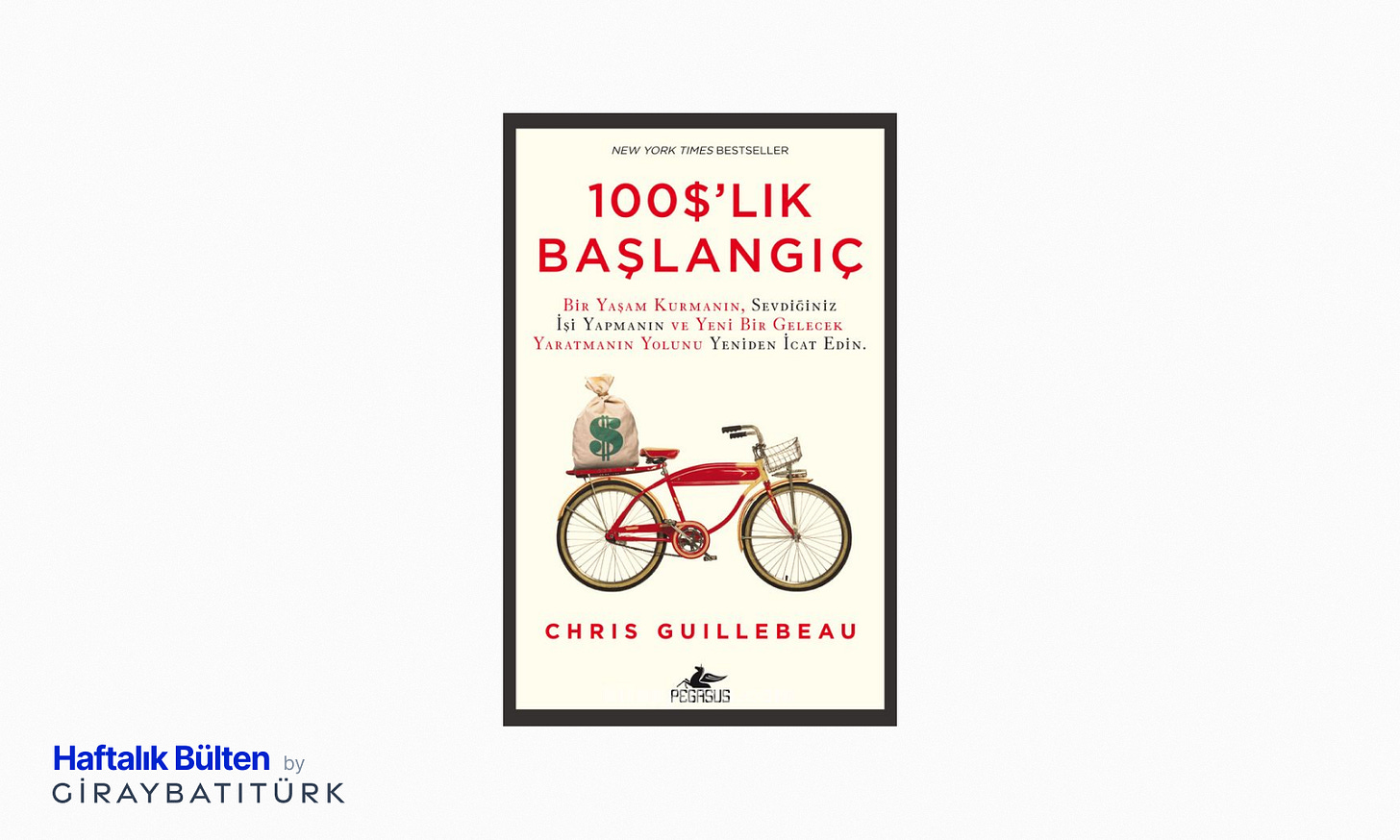 Girişimciliğe atılmayı hedefleyen tasarımcılar için Chris Guillebeau' nun "100 dolarlık Başlangıç" kitabı ilham verici bir okumadır. Minimal sermaye ile kendi girişiminizi başlatma hikayeleri ve stratejileri sunar, tasarımcılara yalın startup metodolojisinin ilkelerini öğretir ve tasarım becerilerini girişimcilik çabalarına nasıl uygulayabileceklerini gösterir.